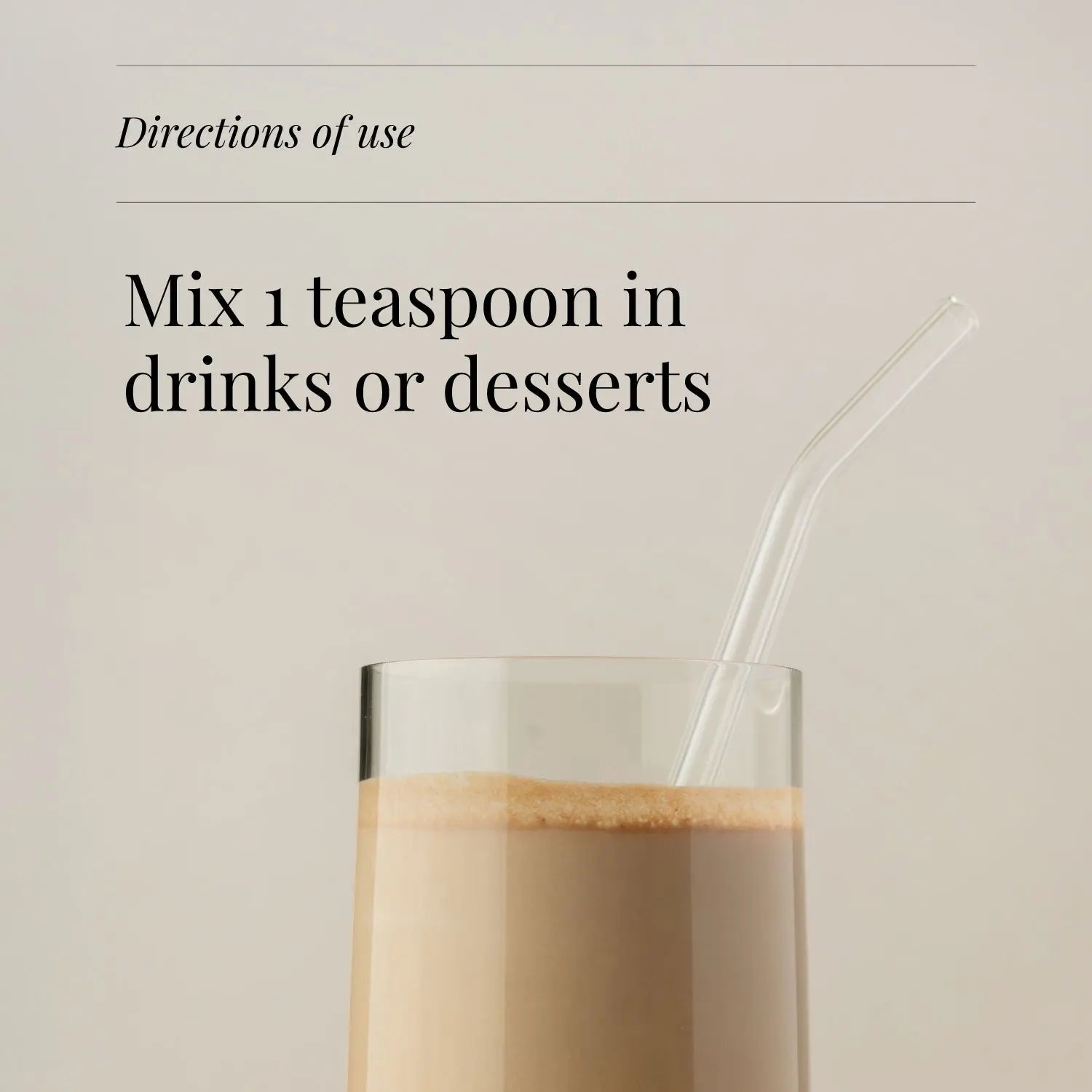 This can be mixed with any cold drinks such as water, smoothies or juice. It can also be added to desserts, yogurt, granola, chocolate and used in baking.